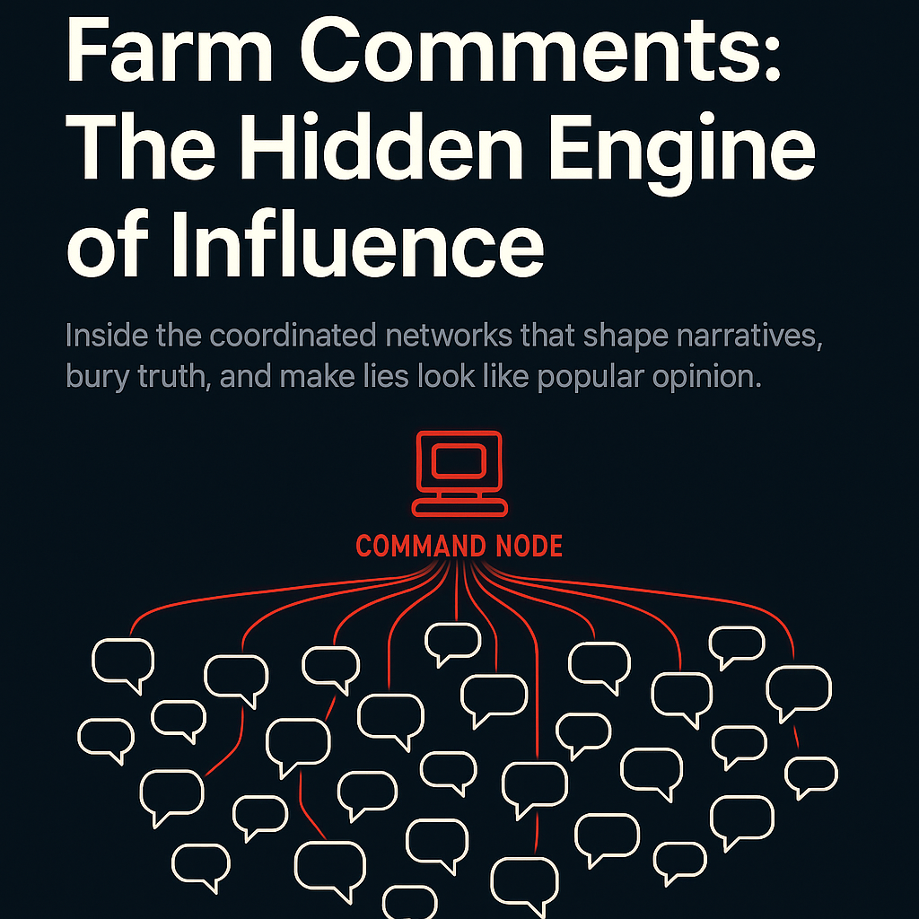 Farm comments are not about individual opinions — they are orchestrated influence operations designed to shift perception, control narratives, and manufacture false consensus.